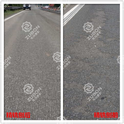 所謂超精銑刨,就是用專用的高密度到頭的銑鼔,對水泥和瀝青路面進行銑刨作業,普通2米銑刨鼓的刀間距為18mm,刀頭數量約為160只,而精銑刨鼓的刀尖距僅為5mm,而刀頭數量接近700只!表面切削密度大,所以精銑刨出來的表面細密而均勻,粗糙度高,防滑摩擦系數高。