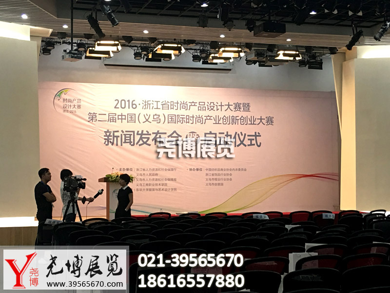 上海堯博展覽器材有限公司承接各種會議酒店背景板搭建、酒店會議背景板搭建、桁架簽到板背景制作。