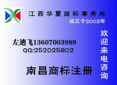 服務項目:代理商標注冊申請、續展、轉讓、變更、補證、異議、評審、市知名商標認定申請、江西省著名商標認定申請及省著名商標延續認定申請、馳名商標認定申請、江西申請、商品條碼申請及續展、無形資產評估等服務。