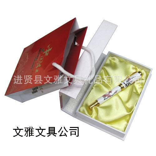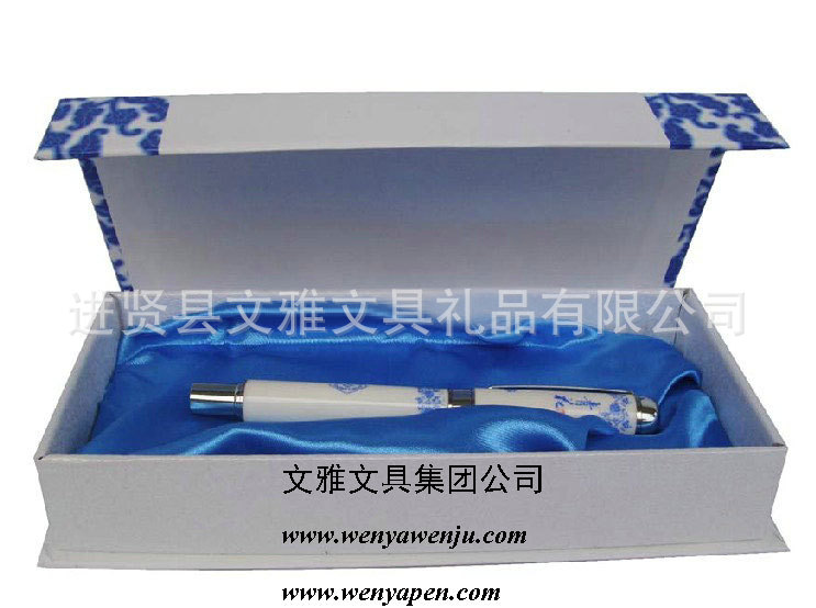 文雅文具青花瓷筆、工藝筆、陶瓷筆、簽字筆、禮品筆、鋼筆 文雅文具青花瓷筆:是純陶瓷燒制的筆。分鋼筆和簽字筆,“中國風”已成為世界的一種時尚。白釉青花一火成,花從釉里透分明??蓞⒃旎忍烀?,無極由來太極生。文雅筆業遍訪國內知名的瓷窯,遵循古法,經過素燒、上釉、釉燒等10道工序,三進三出瓷窯以1200度的高溫為您燒制出世界首款陶瓷系列禮品----筆身晶瑩剔透,手感潤滑,此款筆生產的難度系數極高,因為筆身的陶瓷厚度為1.3毫米,筆身和陶瓷筆桿的誤差為0.05毫米,燒制溫度為高溫1200度,陶瓷筆管從做模,到貼花出成品時間為10道工序,出成品后經過嚴格篩選,一般要淘汰一半多不合格的,選出來的可謂百里挑一,由于市場上無此類產品,青花瓷筆的問世,將是禮品市場的大熱門。