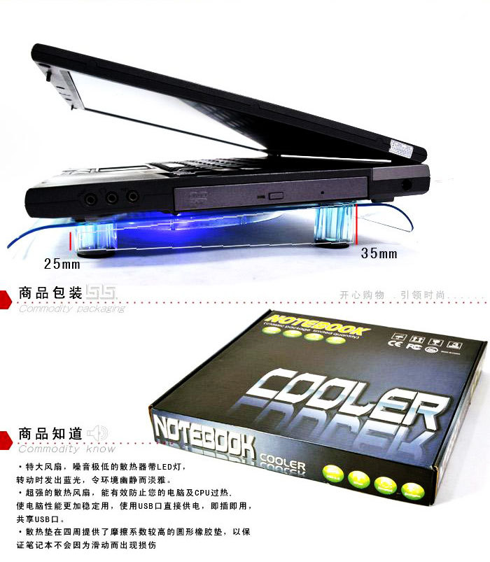 ★直接對著筆記本電腦底部吹散熱量,將筆記本熱量強制吹出,并引入冷空氣,增加筆記本底部的空氣流動,從而使筆記本電腦內部各發熱元件均得到散熱,有效保持內部的低溫工作環境。