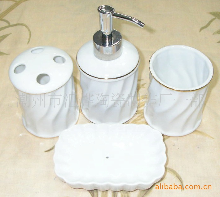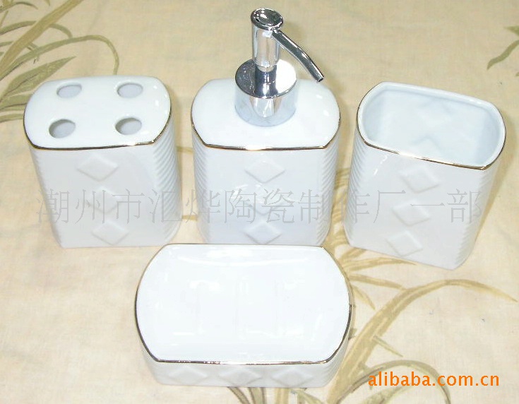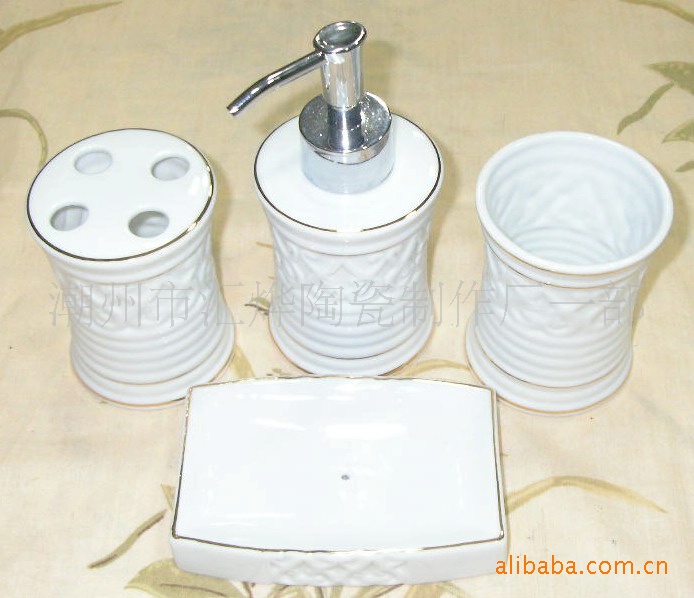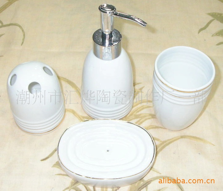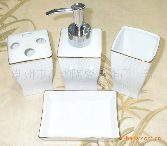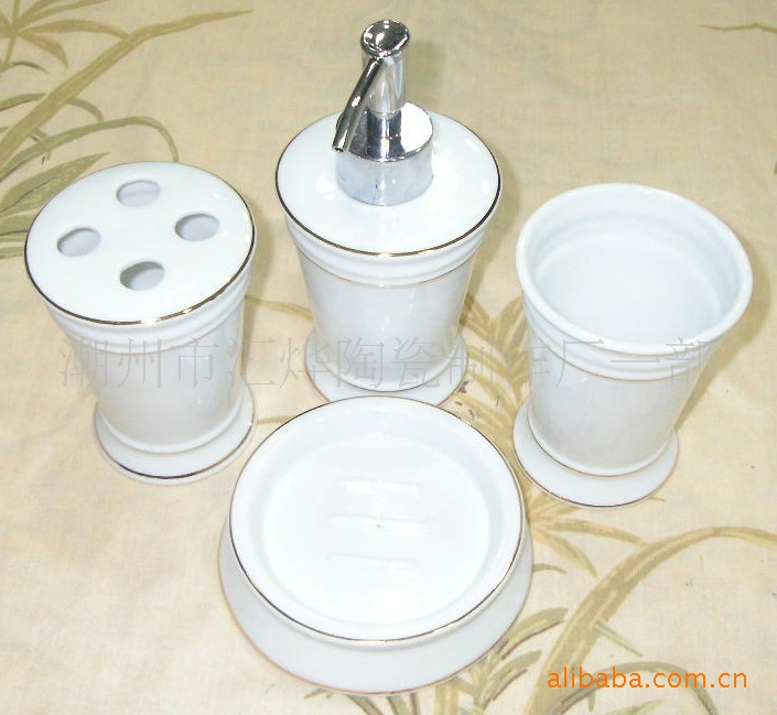 供應陶瓷加金潔具/噴瓶/口杯/牙插/皂碟