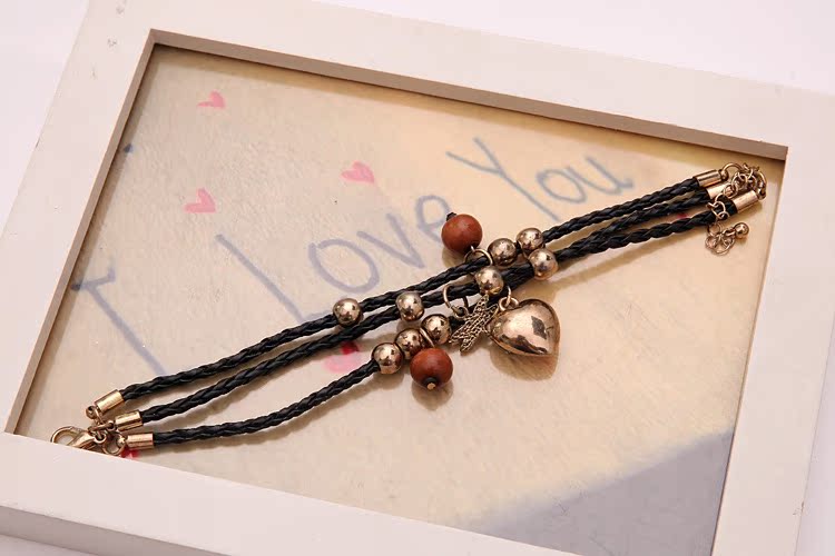 中能手飾品批發 桃心圓珠蜻蜓小配件復古手環 香巴拉多層編織手鏈