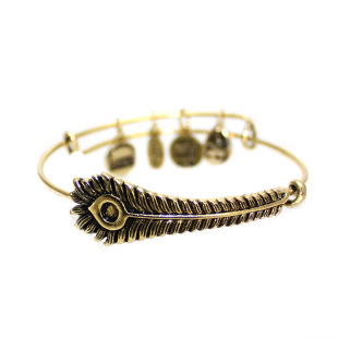 Alex and ani外貿原單熱賣飾品批發 復古合金孔雀翎羽毛吊墜手鐲¥:4.00
