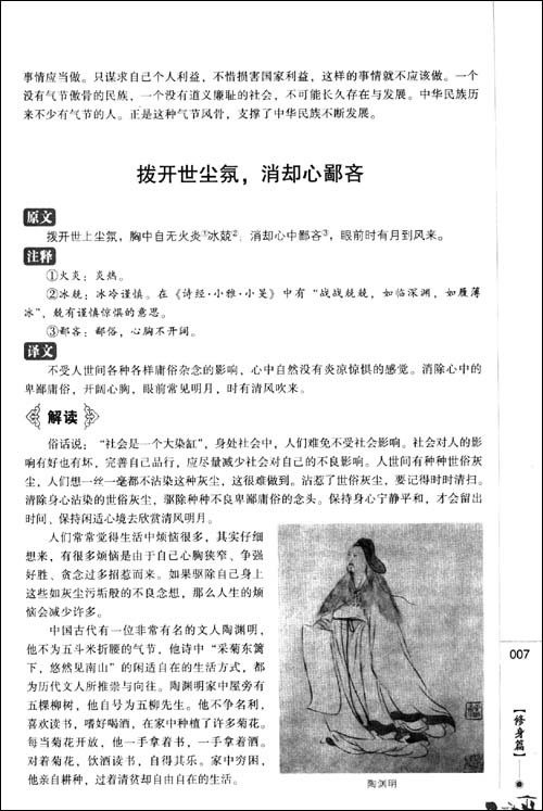 宋人汪信民說:“人咬得菜根,則百事可做?!泵魅丝准娣Q:“譚以菜根名.固自清苦歷練中來,亦自栽培灌溉里得?!弊x懂了《菜根譚》,體會出人生百種滋味,就能做到“風急雨斜處,立得腳定;花濃柳艷處,著得眼高;路危徑險處,回得頭早”。