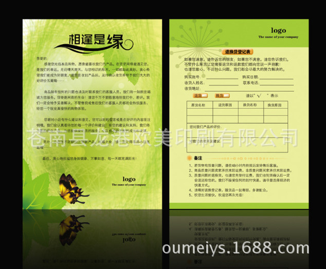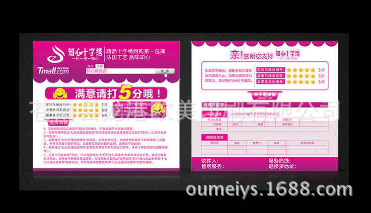 專業訂制天貓、淘寶店鋪、網店售后保障卡、售后服務卡等