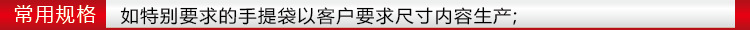 2);規格尺寸:本廠設計稿上所標明的袋子尺寸指的是外徑尺寸,成品尺寸與實際尺寸會有5MM以內的誤差(這是印刷品的合理誤差),所以請客戶定做時把握好尺寸,如不是本廠的原因,做小了,導致東西裝不了,本廠概不負責!謝謝