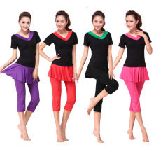 夏季新款廣場舞蹈裝短袖牡丹印花女士七分裙褲套裝演出跳舞服批發52.00