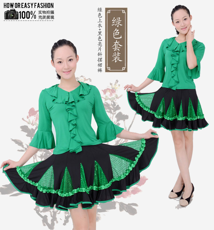 廣場舞蹈服套裝 特價大碼廣場服 工廠批發高品質正品亮片裙套裝