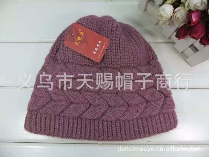 兔毛編織老太太毛線帽子 女士春秋冬季 針織帽子 媽媽帽 老人帽
