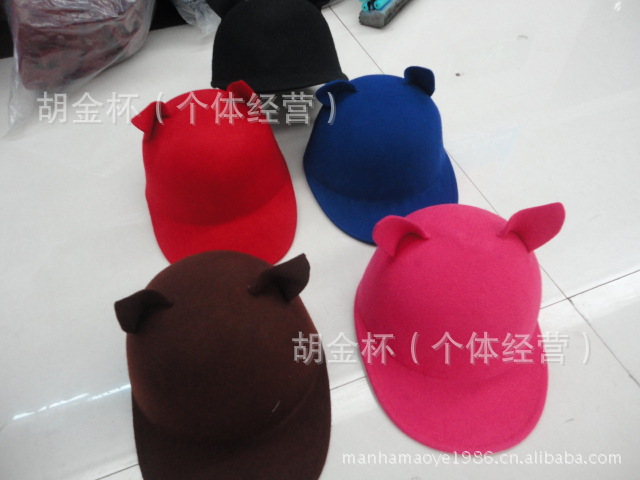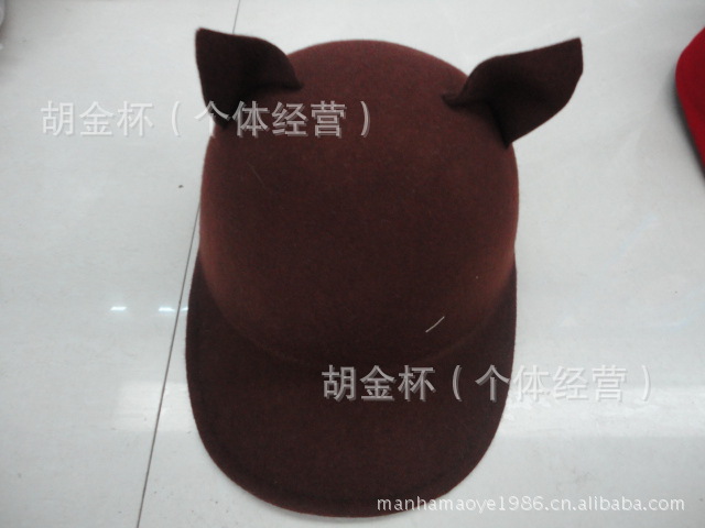 『曼哈帽業』廠家直銷高檔純羊毛女士帽耳朵氈帽秋冬呢帽子