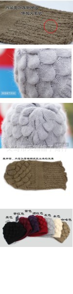 【寶貝描述】本店厚實溫暖一款優質兔毛毛線女帽之一,時尚大方,質地好柔軟親膚。的亮點是內層是加厚珊瑚絨(細節有圖),一戴上去就迅速感覺到溫暖,保暖性超好,特別適合北方高寒地區的女士使用,。