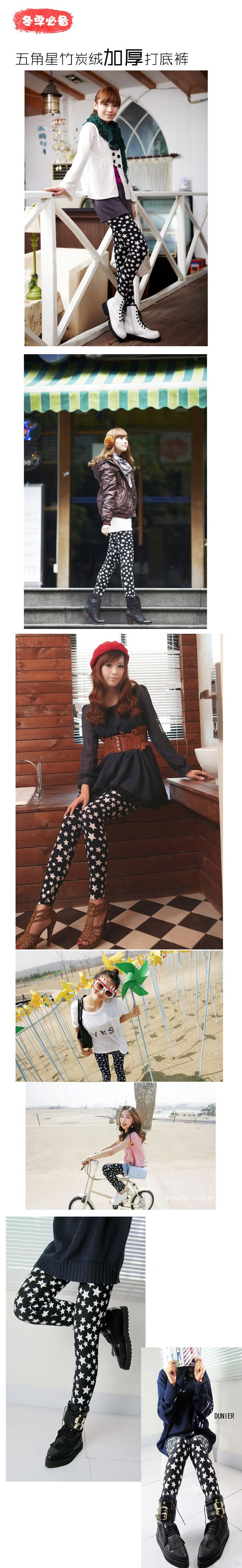 這款星星的打底褲雖然是加厚款,但是穿在身上不會很臃腫哦!