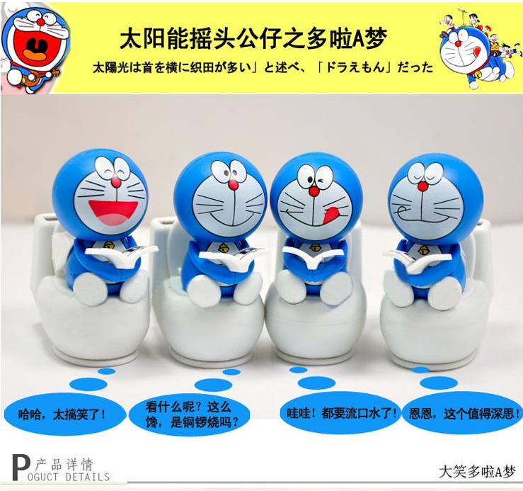 A3542太陽能搖頭公仔 哆啦A夢汽車搖擺件 機器貓 馬桶叮當貓