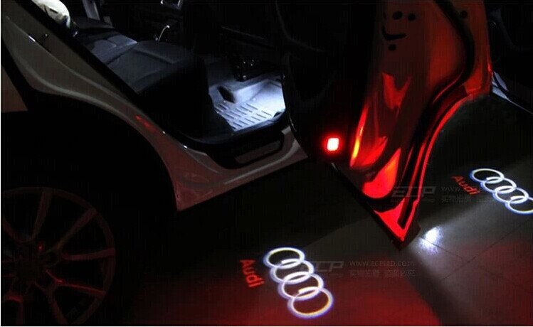 ①目前市面上的原裝位免打孔替換投射門燈,投射圖像為車標標識。