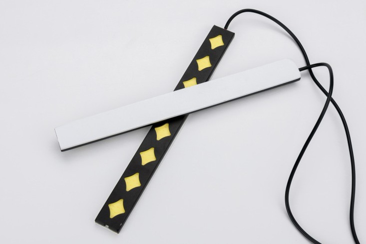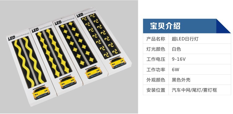固定方法:日行燈隨包裝配有正品3M膠,貼前清理干凈受貼面,將3M膠用風筒加熱后一面貼在日行燈背面,另一面貼在汽車安裝位置即可。