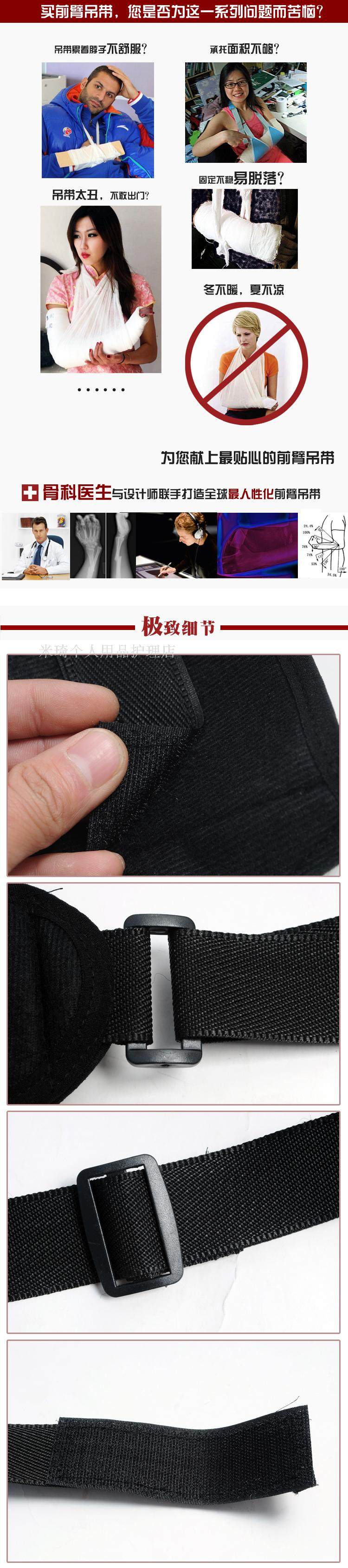 本品由梯形袋和固定帶兩件組成,使用說明如下: 1、將患肢前臂穿入梯形袋,梯形袋上側兩端的背包帶格子通過同側肩膀在背部交差后,分別穿過腋下、梯形袋底部,與梯形袋前面的尼龍袋面布粘連。這樣固定使上肢的重量集中在雙肩上,且梯形袋上背包帶的伸縮可調節肘關節角度,使上肢固定在一個舒適的位置。 2、固定帶內外二層,外層由尼龍粘帶與布構成。內層由全棉絨布制成。內層兩端縫有尼龍粘帶,先將固定帶一端內層粘帶粘在梯形袋錢,然后把固定帶沿患肢、胸背部從雙側腋下繞一圈,重疊在固定帶上,將另一側內層粘帶粘在固定帶外層尼龍袋布上,使患肢牢固固定。 3、肩肘固定帶必須在醫師指導下使用。 4、使用本品時,若患肢出現腫脹,疼痛加重、麻木,應立即去醫院咨詢。 5、使用本品時,未遵醫囑,不可隨意除去。 6、本品不可熱水洗滌,不可曝曬。 7、本品必須存放在干燥通風處。