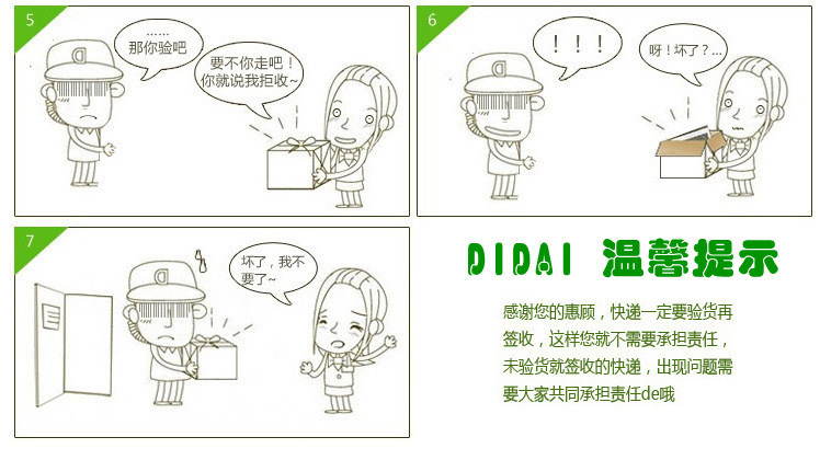 破損:因運輸原因導致的破損責任將不由我司承擔(建議選擇德邦,佳吉之類有保險的物流)。但我們有義務盡一切努力協助客戶解決此問題,我司會采用物流雙層包裝、加墊緩沖物、緊湊疊放等方式來避免破損事件的發生。請您(或其他代收貨的人)務必要和快遞人員一起檢查貨品的數量和外表(這是您的權利),如數量不對或外表破損,請快遞人員簽名確認。