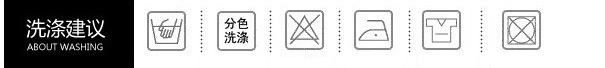 洗滌說明:可手洗、分色洗滌、可低溫熨燙、平攤干燥、不可機洗、不可氯漂。