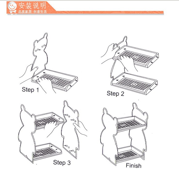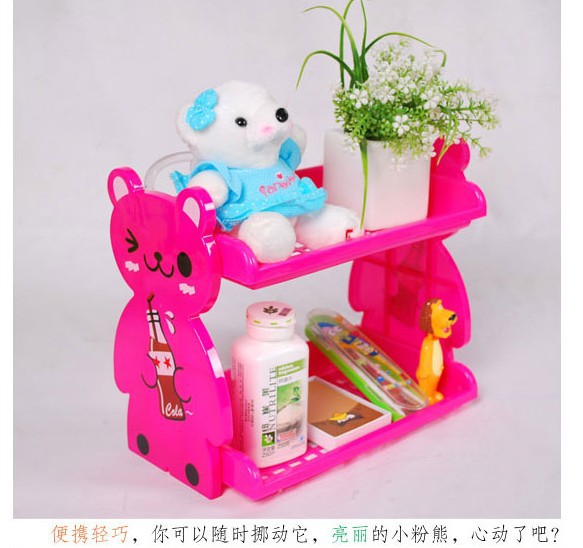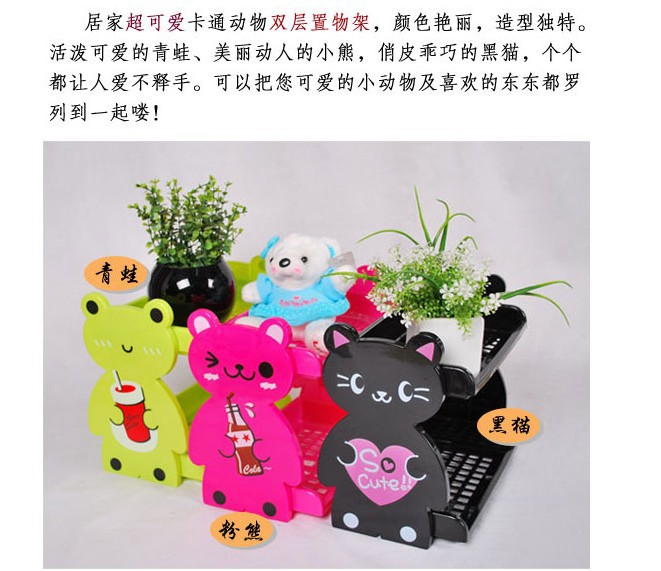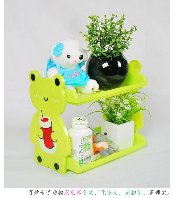 一款卡通的置物架,有兩層!不管是放在浴室還是其他地方都非常的實用方便!也可以做為收納架,讓你的地盤整整齊齊,舒舒服服!卡通造型,實用又可愛,也可以做為裝飾品使用,送朋友也是不錯的選擇喲!色澤靚麗,新穎,時尚??烧郫B,可脫卸,是收納各種雜物,雜志的好幫手。放在書桌、電腦桌上、 給房間增添幾分童趣。