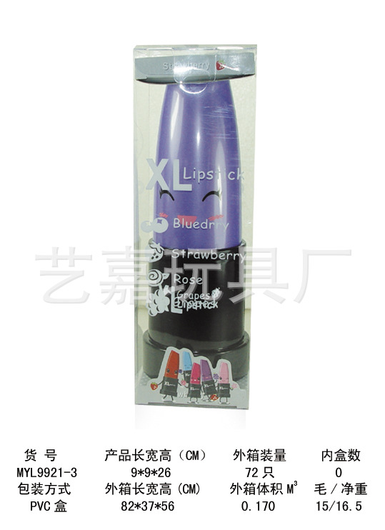 唇膏臺燈帶錢罐.橙紅.玟紅.淺藍.紫四款。