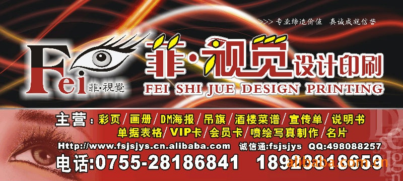 菲視覺設計印刷有限公司是一家服務于中高端客戶群體的專業的平面設計和品牌形象設計公司,著力于打造企業品牌形象。我們的特點在于專、精,在于執行!在于跟蹤服務!