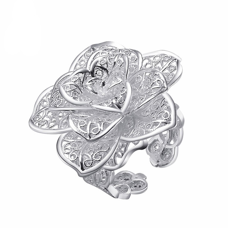 原創設計手工花絲玫瑰花純銀戒指990足銀女鏤空銀飾情人節禮物