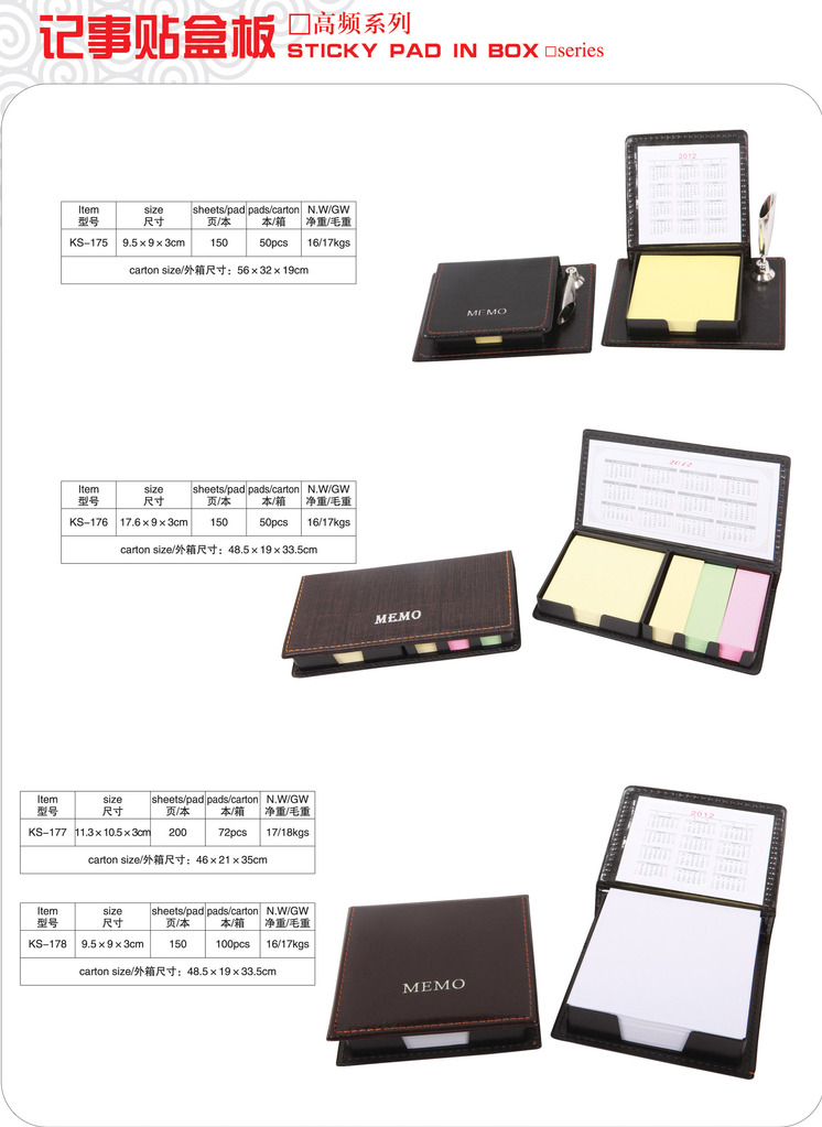 規格:148mm*88mm*21mm 內芯:記事貼 標志:MEMO 包裝:OPP膜,普通紙箱,200只/箱