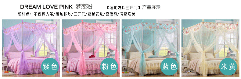 羅萊三開門 加密加粗加厚不銹鋼 落地式宮廷方頂公主學生蚊帳批發