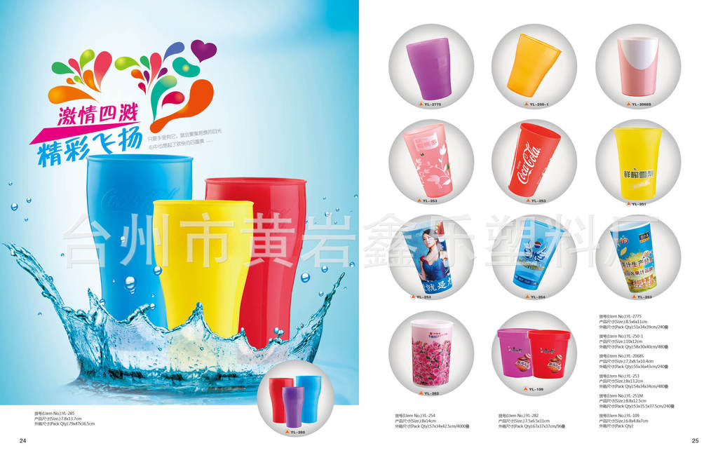 臺州市黃巖鑫樂塑料廠位于中國的日用塑料制品王國-浙江黃巖。是一家集開發、生產、銷售為一體的專業塑料制品的現代化綜合性企業。我們還為國內外知名企業,如百事可樂、可口可樂、康師傅、統一等等(飲料;食品;)等行業生產和制作促銷禮品。我司產品有樂扣杯,雙層杯,保鮮盒,飯盒,密封罐,,掛繩杯,一次性紙杯,家居用品.......價格比較實惠,定位在1-5元之間,合適做大批量禮品訂購和贈品,促銷禮品,產品以5000pcs起定。