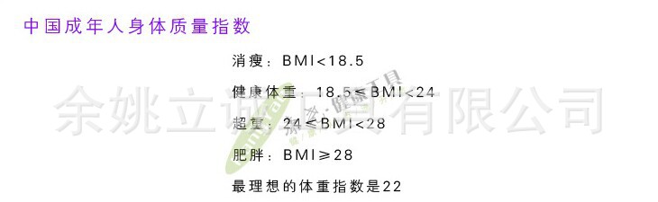 BMI(Body Mass Index)即身體健康指數,是與體內脂肪總量密切相關的指標,主要反映全身超重和肥胖。肥胖的世界標準是:BMI在18.5至24.9時屬正常范圍,BMI大于25為超重,BMI大于30為肥胖。中國營養協會建議中國居民BMI的健康范圍是20至24,BMI在24至28時為超重,BMI大于28為肥胖。