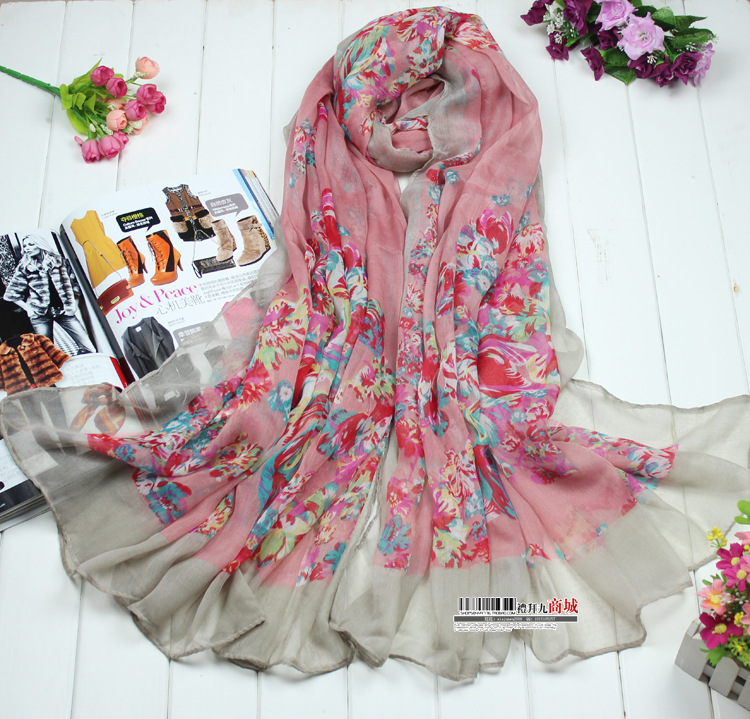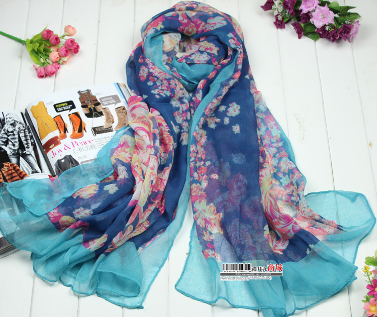 BLS136經典款巴厘紗圍巾 花卉圍巾 超長超大款