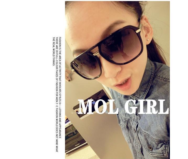 太陽眼鏡 時尚復古男女太陽鏡 明星款潮人墨鏡雙橫杠蛤蟆鏡