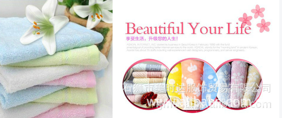 石獅市美時達紡織品公司主要是生產銷售各種樣式毛巾訂做及各種紡織品化纖布料產品我們堅持以開拓創新來爭取市場,以質量及價格來留住客戶,我們求真求實.求質求量.追求卓越"不鋪張,不浪費,不參加任何有償評獎.推薦,真正把實惠優質的價格留給消費者,讓你真正享受高質量低價格的服務,竭誠歡迎國內外各界新老朋友蒞臨參觀、指導和業務洽談。