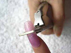 1、使用一字剪小心地將水晶甲簡短