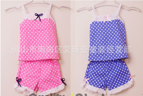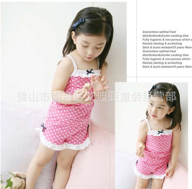 2012年夏款 女童裝寶寶套裝 蝴蝶結點點吊帶+短褲兩件套
