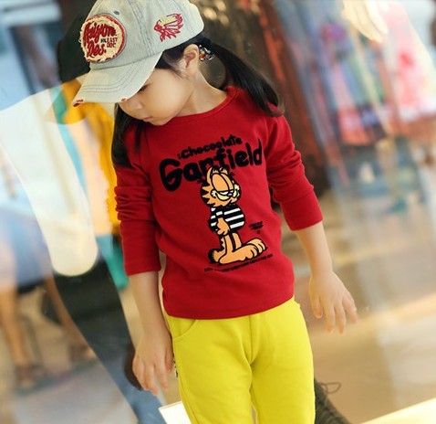 童裝批發2012冬款 工廠直批加菲貓加厚長袖T恤新款不倒絨保暖內衣