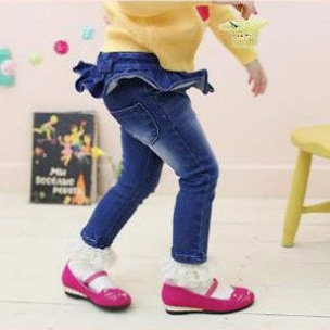 【外觀】:女童2013荷葉邊牛仔褲