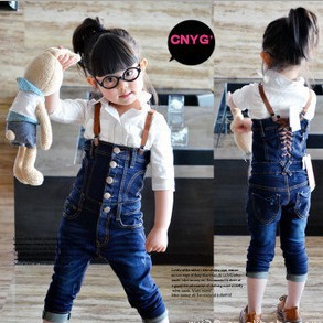 【款式】新款 韓版深藍牛仔系帶裹 胸女童背帶連體牛仔褲