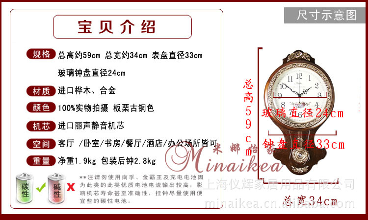 上海儀輝家居用品有限公司主要生產加工及進口仿古 歐式 現代 簡約掛鐘 座鐘及仿古電話 家居擺設品等家居用品,自公司成立以來一直注重自身品牌形象的塑造及產品質量嚴把關?,F誠邀代理及批發商。