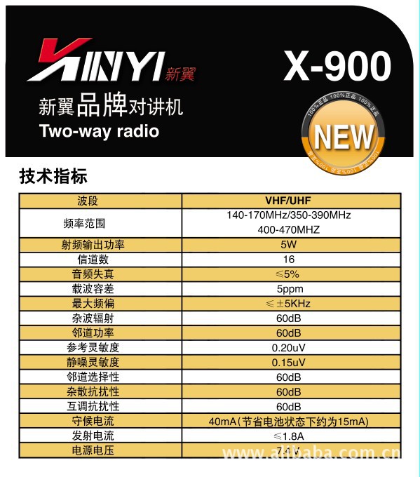 新翼X-900民用/軍用對講機/酒店/KTV/婚慶對講機手臺