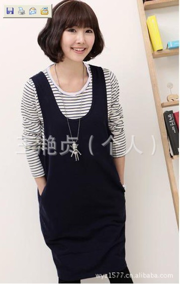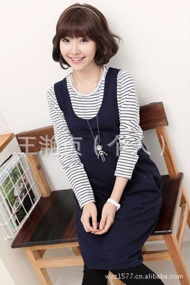 顏色:黑白條打底衫 藏藍背心裙(如圖)