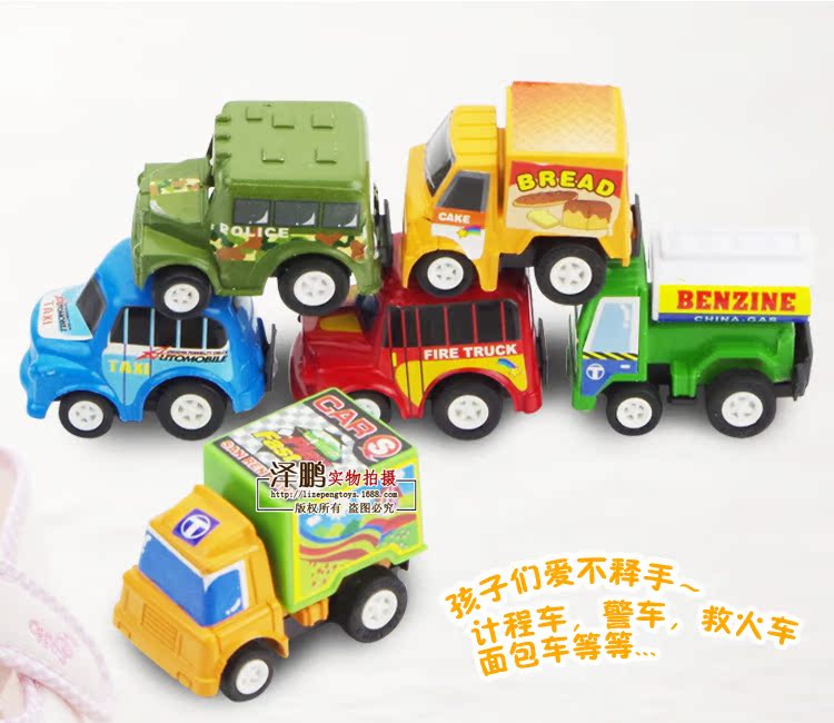 袋6輛玩具汽車回力車玩具 迷你回力小汽車往后一拉吱溜就跑