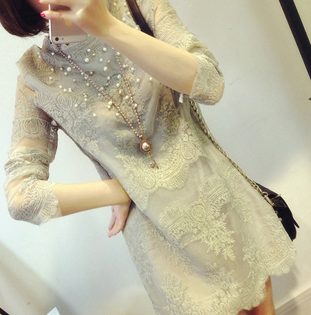 面 料高檔優質蕾絲面料款 式蕾絲連衣裙特 點 春秋外穿冬天打底,可以穿三季的蕾絲連衣裙,高檔優質蕾絲面料,做工精細,高端定制,優雅 名媛氣質 若隱若現 非常修身 小立領氣質名媛風 中長款蕾絲衫下面可以 配緊身打底褲,超親膚哦~小性感 小女人哦!必須自留款! 身高體重三圍尺碼