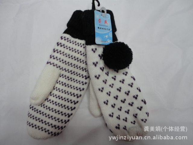 廠家直銷韓版五指翻口V點吊雙層毛線手套 冬季可愛女生必備