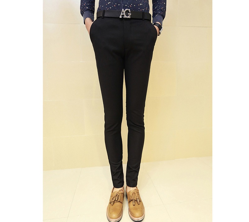 2014春裝男士休閑褲金邊裝飾男黑白2色白色黑色微彈非品牌修身