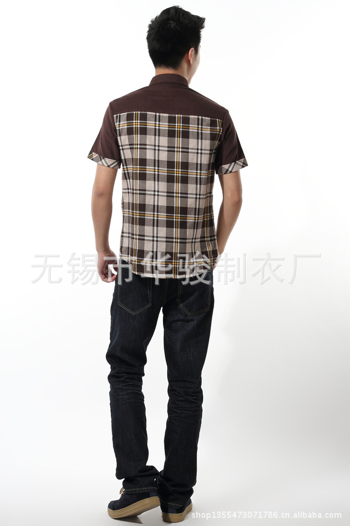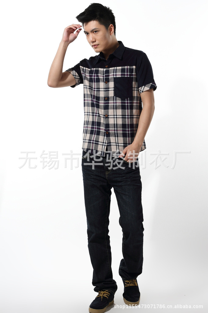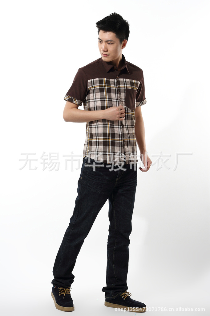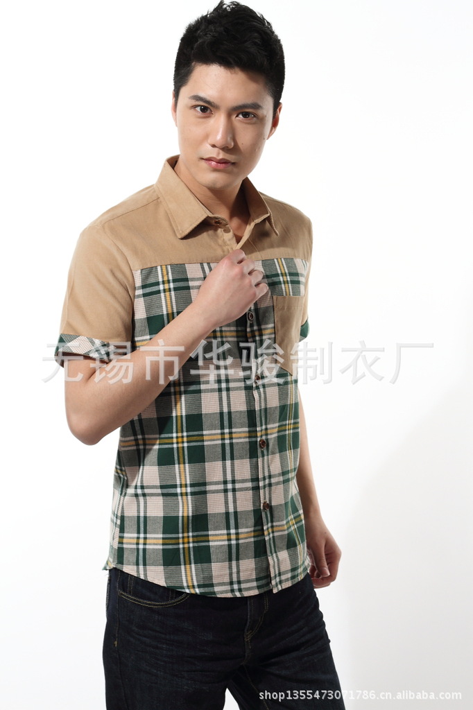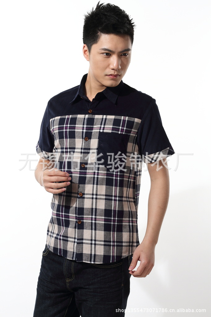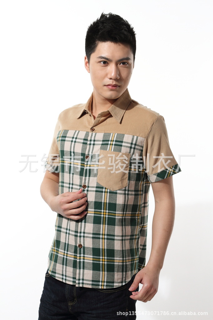 2013精品夏季男裝燈芯絨襯衫男短袖男士格子襯衫韓版修身襯衣