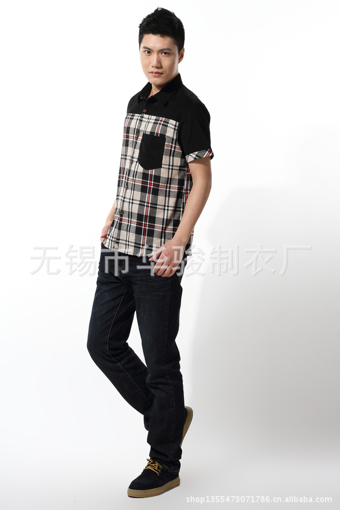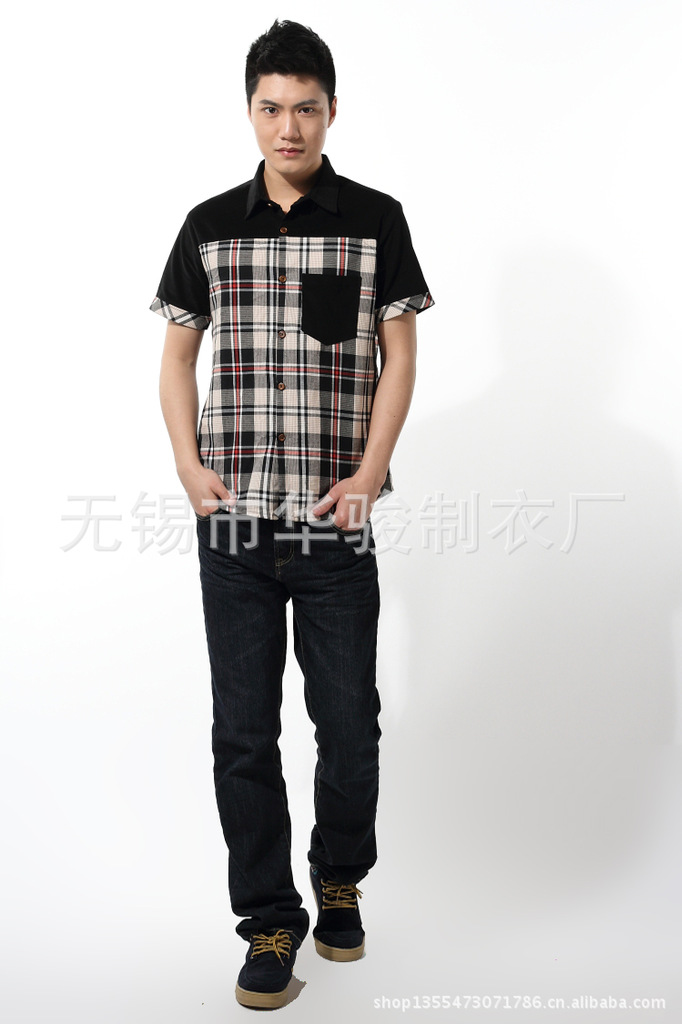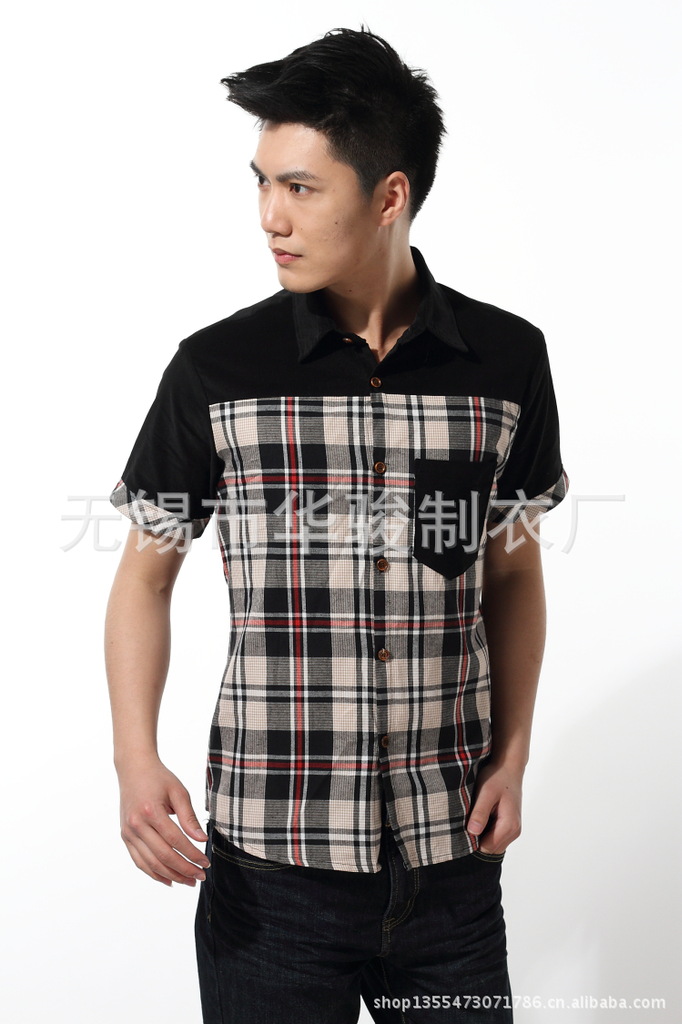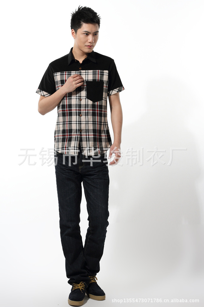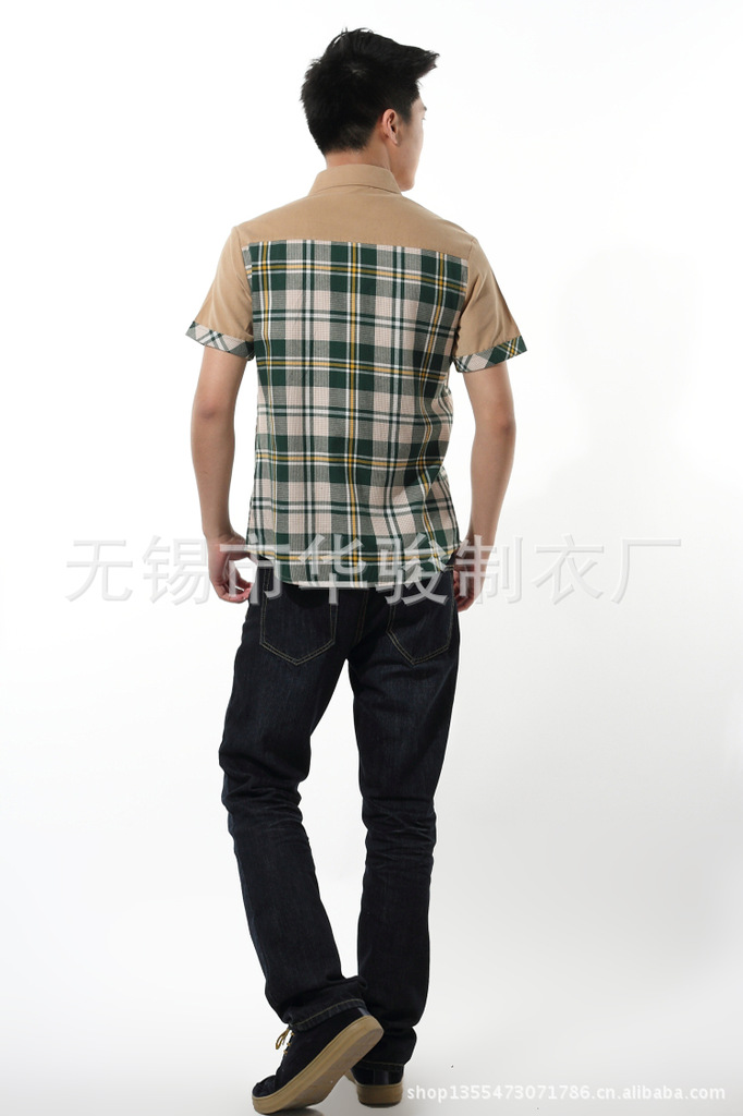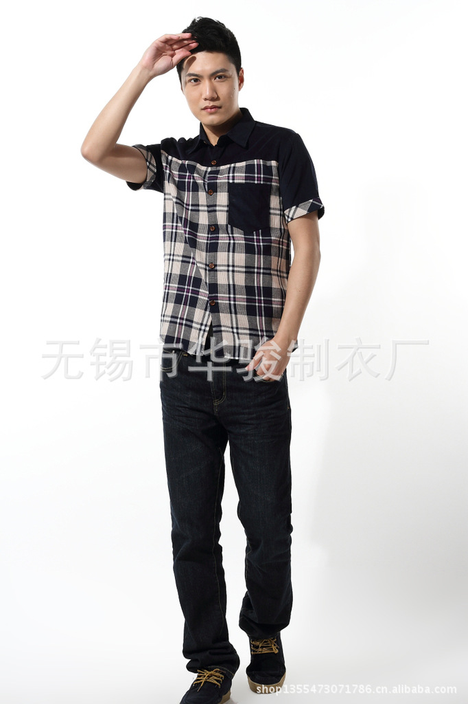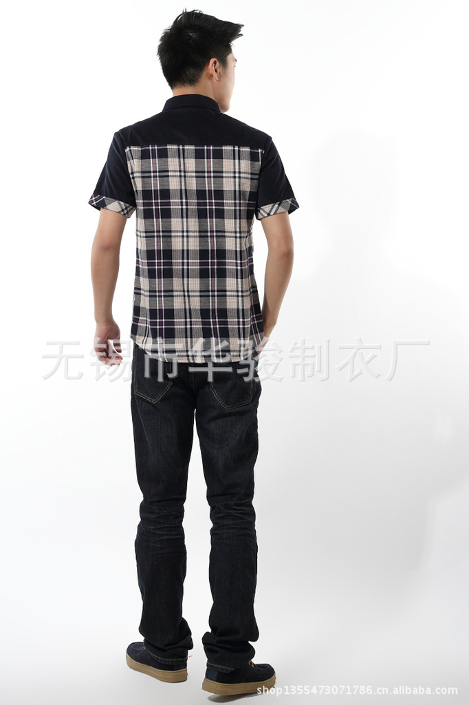 2013精品夏季男裝燈芯絨襯衫男短袖男士格子襯衫韓版修身襯衣