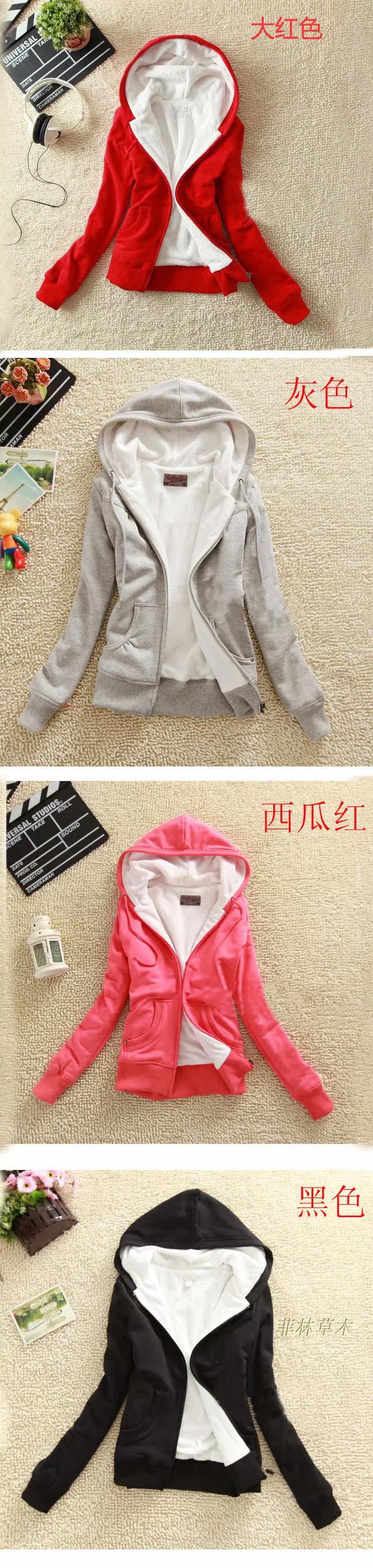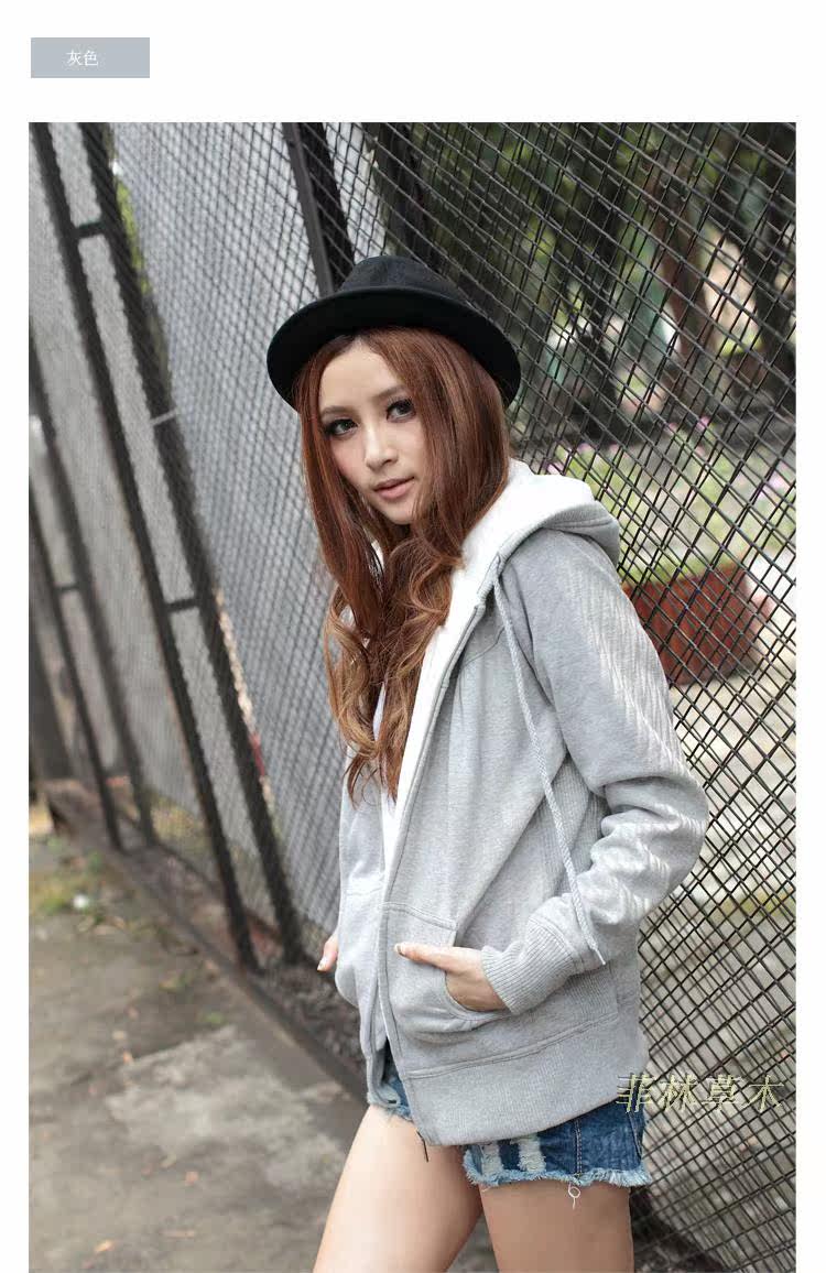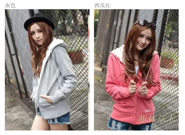 2013秋冬新款女裝休閑加厚大碼加絨保暖連帽衛衣開衫外套