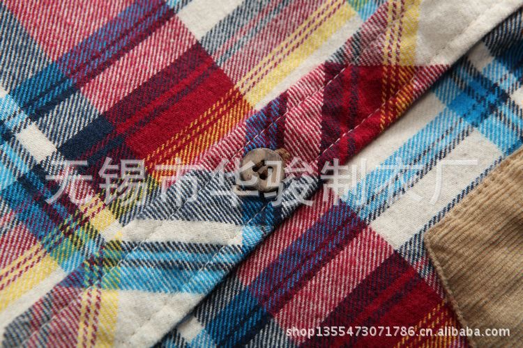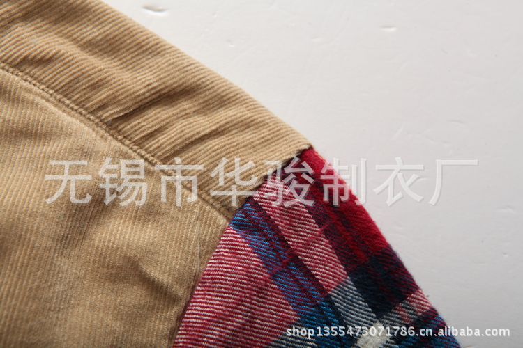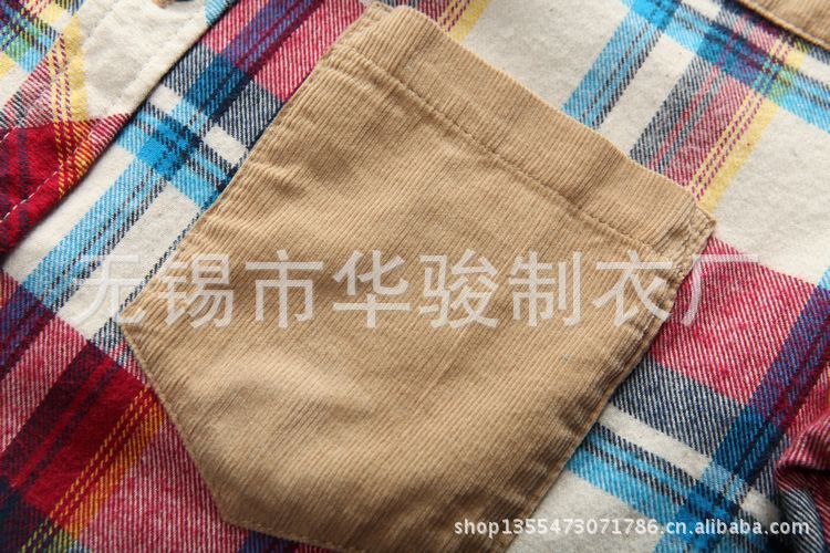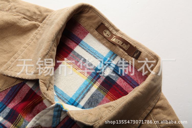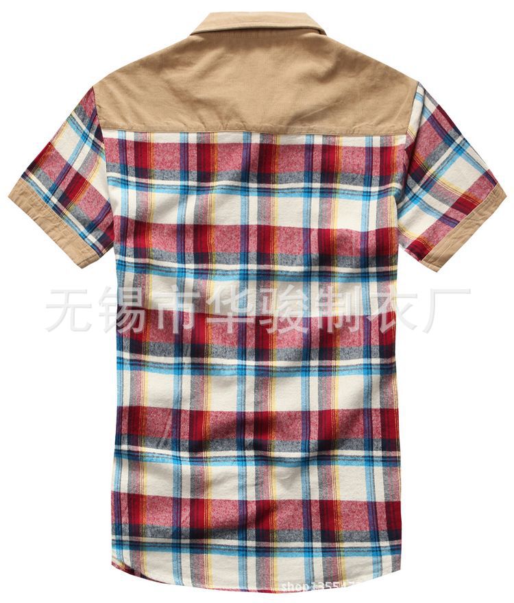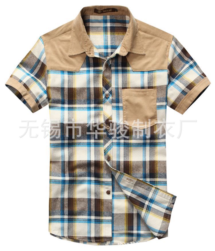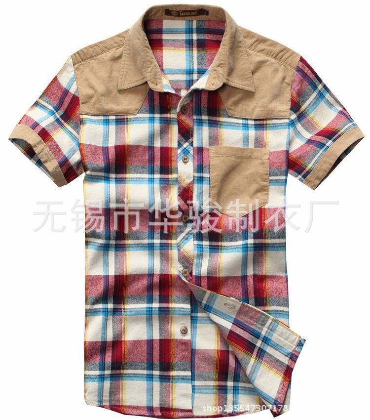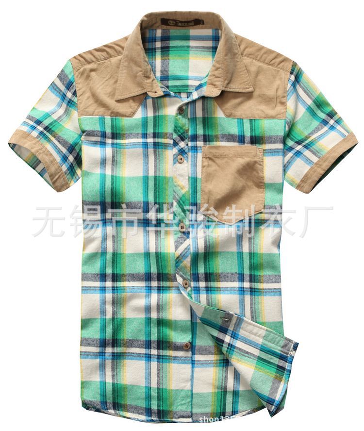 廠家直銷2013夏季新款燈芯絨拼接潮流休閑時尚格子短袖襯衫 代發
